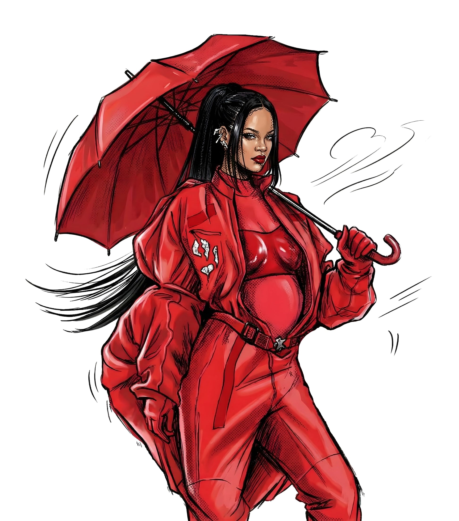 Inspired by Rihanna’s unforgettable Super Bowl performance, this design captures confidence, control, and effortless power. No distractions. No overdoing it. Just presence.
